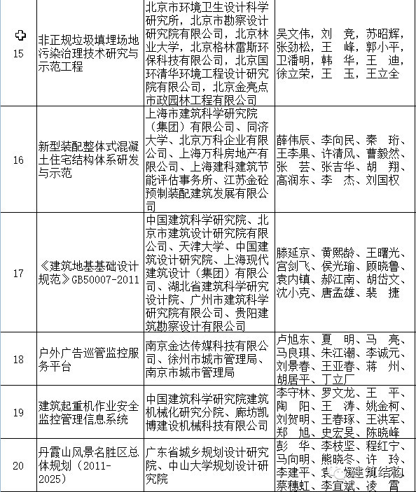 该奖项的推荐范围为:城乡规划、村镇规划、工程建设、城市建设、村镇建设、建筑业、住宅房地产业、勘察设计咨询业、市政公用事业中的:新技术、新产品、新工艺、新方法、新材料、计算机软件等建设科技成果;引进、消化、吸收、开发、应用国外先进技术与产品;为行业服务的标准、规范、科技信息、科技档案等科技基础性成果;与决策科学化、管理现代化相关的软科学研究成果;有组织有计划大规模推广应用并取得显著效益的科技成果;采用新技术、新成果完成的有示范作用的项目等。