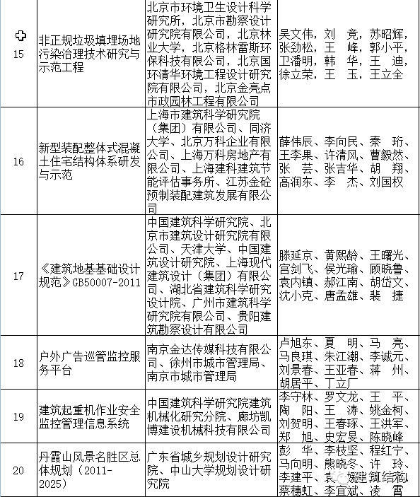该奖项的推荐范围为:城乡规划、村镇规划、工程建设、城市建设、村镇建设、建筑业、住宅房地产业、勘察设计咨询业、市政公用事业中的:新技术、新产品、新工艺、新方法、新材料、计算机软件等建设科技成果;引进、消化、吸收、开发、应用国外先进技术与产品;为行业服务的标准、规范、科技信息、科技档案等科技基础性成果;与决策科学化、管理现代化相关的软科学研究成果;有组织有计划大规模推广应用并取得显著效益的科技成果;采用新技术、新成果完成的有示范作用的项目等。